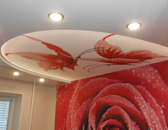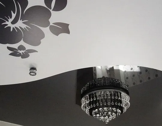 Полотно может быть сатиновым, матовым, глянцевым, с микрорельефом, жемчужным, зеркальным, металлическим, замшевым. В плоскости можно удачно сочетать различные фактуры, что позволяет подчеркнуть цветовую гамму уровней.